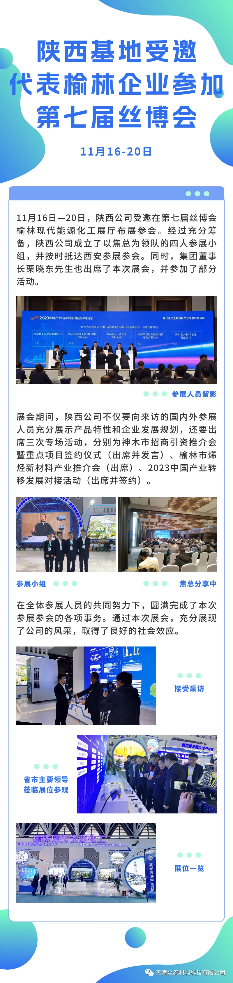 陜西公司受邀在第七屆絲博會,榆林現(xiàn)代能源化工展廳布展參會。經(jīng)過充分籌備,陜西公司成立了以焦總為領(lǐng)隊(duì)的四人參展小組,并按時抵西安參加展會。同時,集團(tuán)董事長栗曉東先生也出席了本次展會,并參加了部分活動。